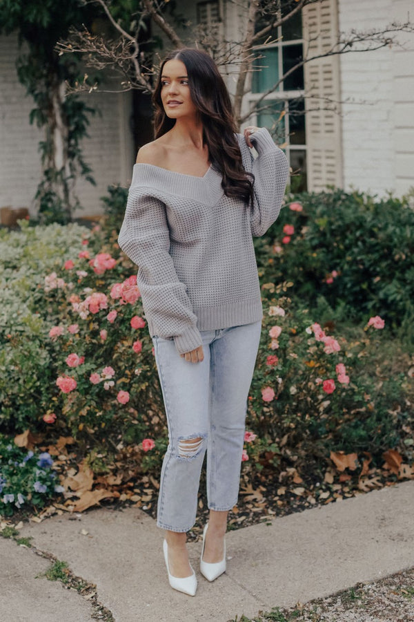 Love Me Forever Sweater (GRAY)Raven is wearing a size SMALL