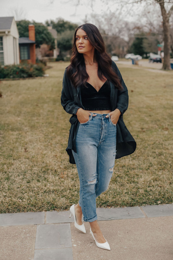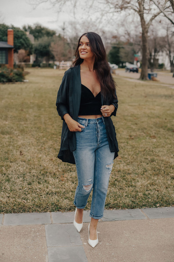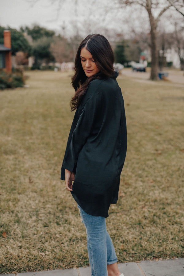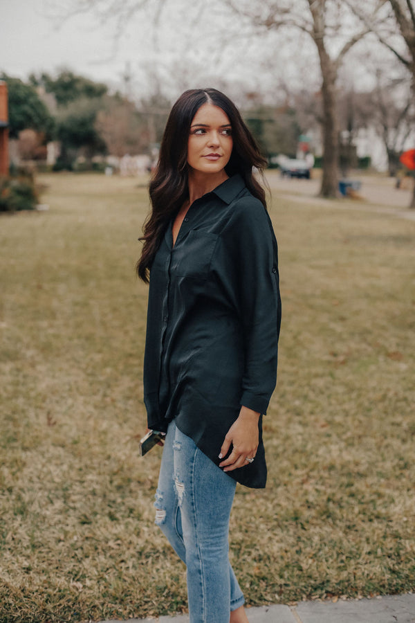High Low Button Down Top Quarter Length SleevesRaven is wearing a size SMALL